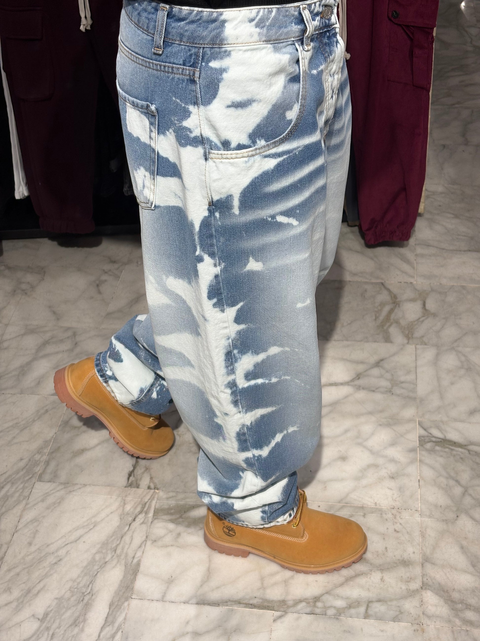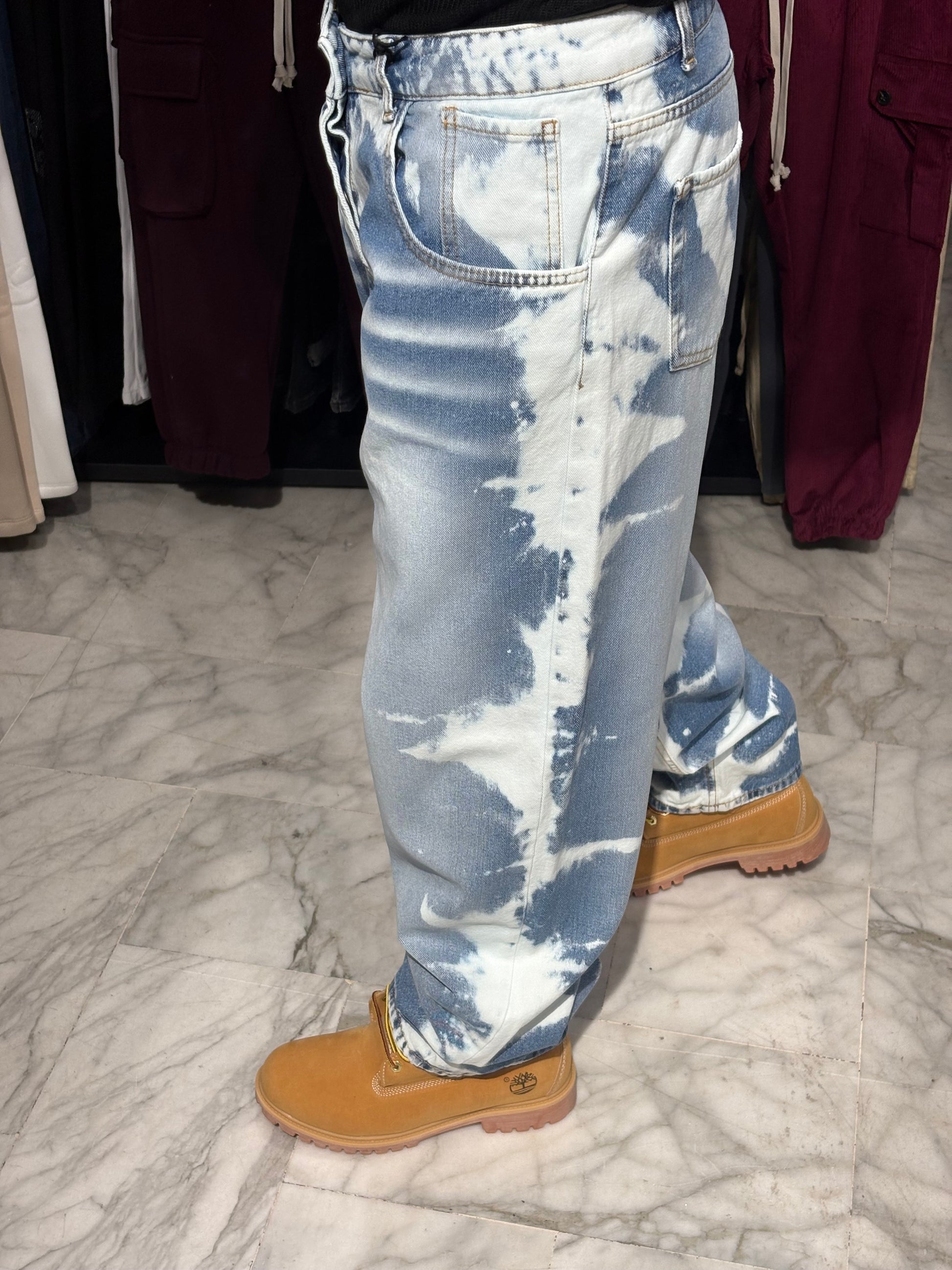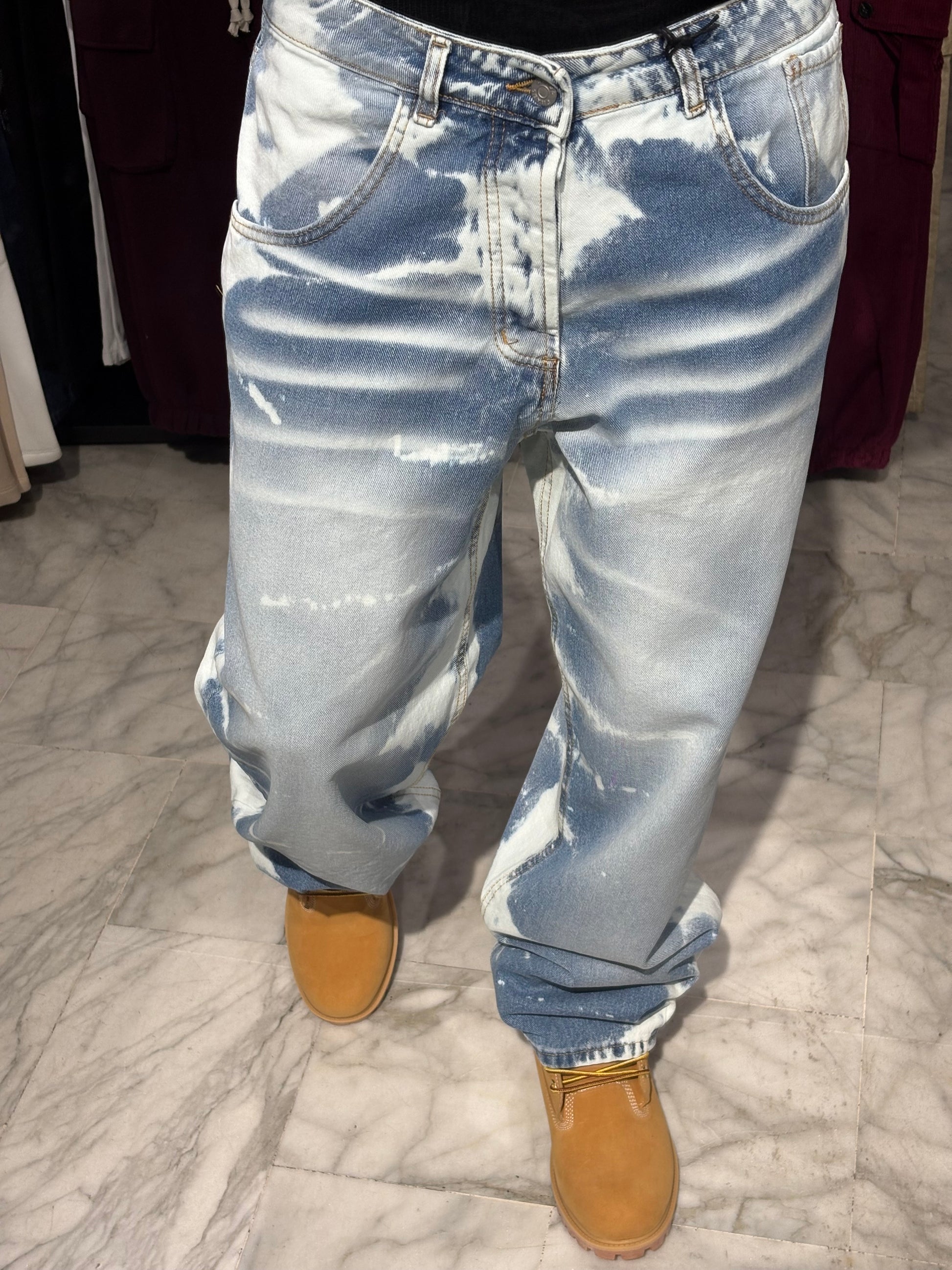 nota: "Trattandosi di un lavaggio artigianale, ogni pantalone è unico e le macchie possono variare leggermente dalla foto." Questo aggiunge valore ed esclude contestazioni!